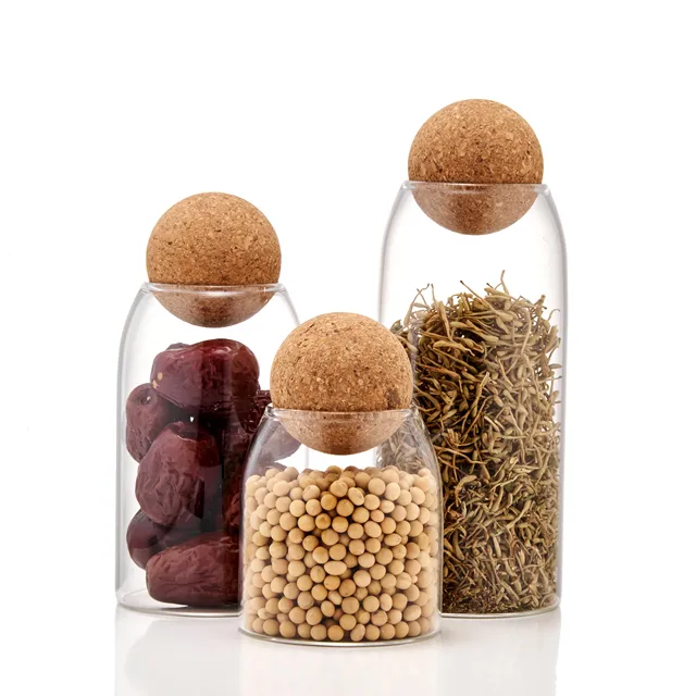 High Borosilicate Glass Jar With Cork Ball Lid Storage Container Jars for Coffee, Tea, Spice, Sugar, Salt, Set of 3
